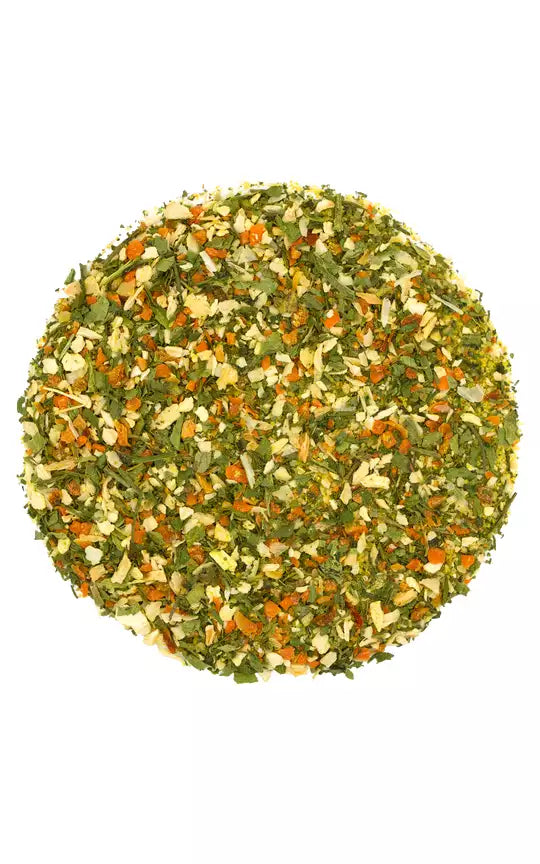 Oparta na korzennych warzywach, popularnych ziołach, aromatycznym czosnku i złocistej kurkumie mieszanka to doskonały sposób na powoli duszone albo pieczone mięsa w sosie własnym. Jest łagodna, a zarazem doskonale podkreśla smak i aromat.